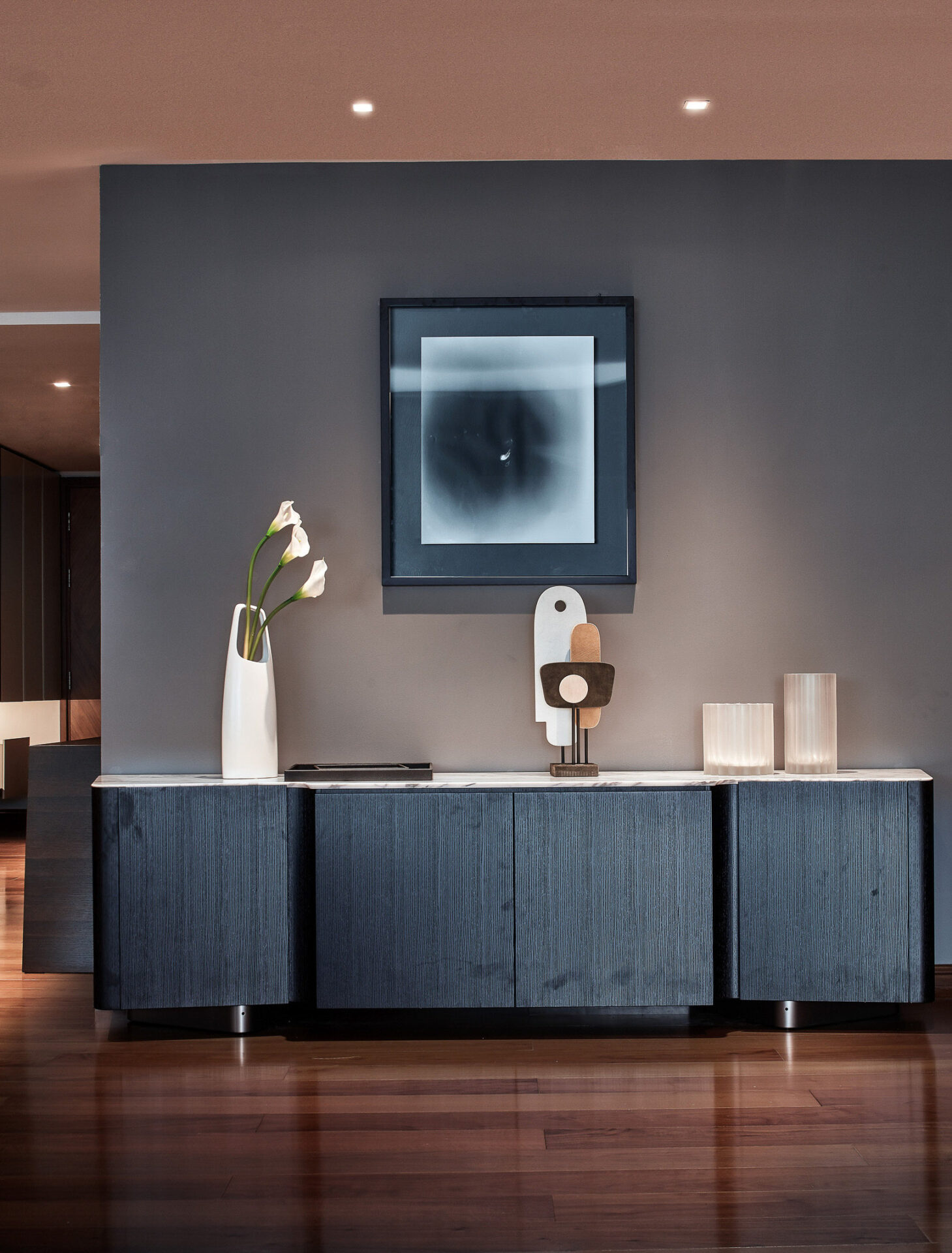 FM Architettura reshaped this luxury apartment into an elegant yet relaxed home, layering tailored furnishings and refined materials to balance sophistication, hospitality and a welcoming, lived-in sense of comfort.