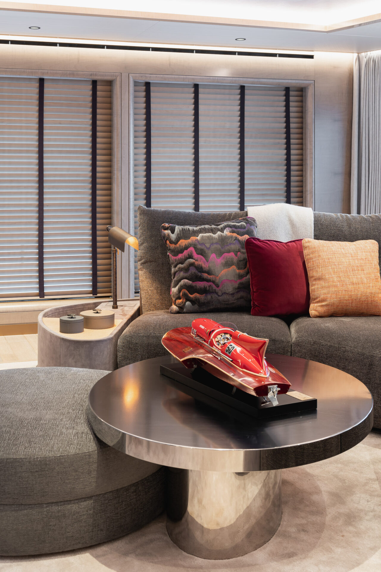 M/Y Somnium is an award-winning 55.2-metre yacht with an interior conceived as a journey through shifting atmospheres, where layered textures, art and light create a complex yet serene environment rich in references to the sea and nature. Designed to meet the owner’s affinity for speed and elegance, it features a large pool with adjustable depth, a cocoon-like upper-deck saloon, a fold-down gym platform, and a vast foredeck lounge.